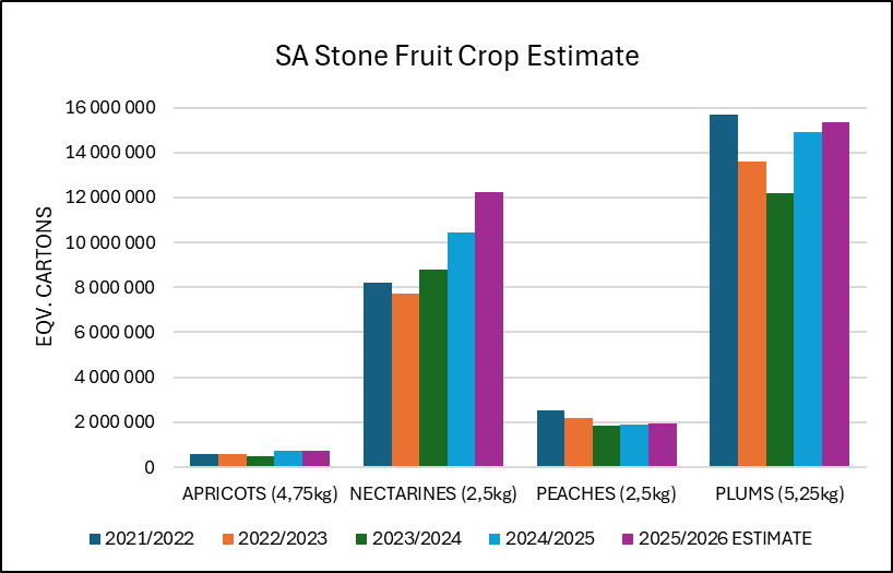 25/26产季,南非桃子出口量预计增加3%,达到194万箱(2.5kg/箱);油桃(主要是黄肉油桃)预计增加18%,达到1226万箱(2.5kg/箱);杏出口量预计在72万箱(4.75kg/箱),较上一季减少3%;李子出口量预计增加2%,达到1510万箱(5.25kg/箱)。