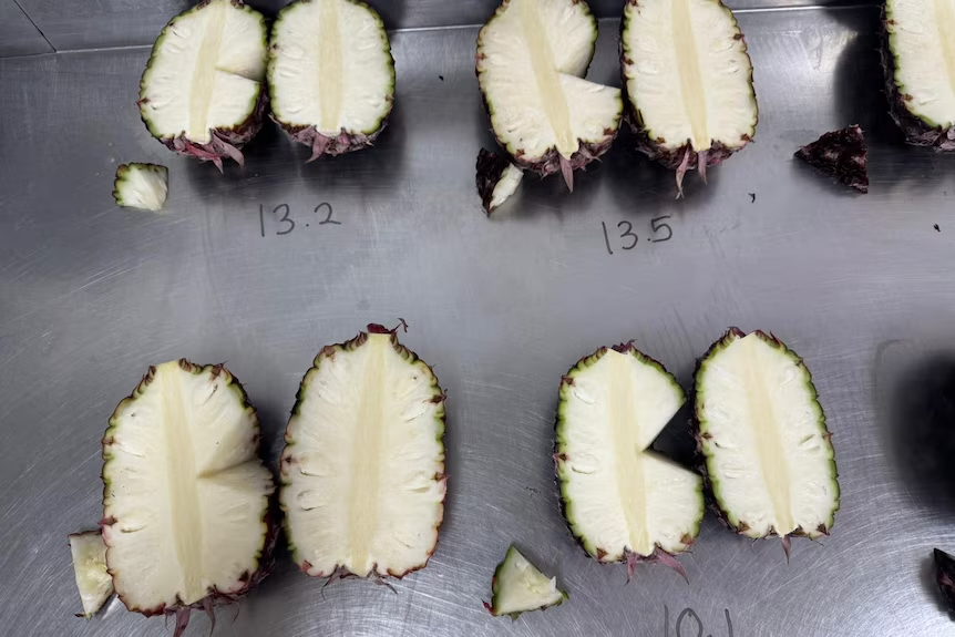 据介绍,Piñata农场从巴西育种者手中采购了两种紫皮菠萝品种,其果肉呈白色,味道香甜、酸度低。农场经营者Scurr表示,消费者对今年用作市场测试的菠萝反馈“非常热烈”,紫皮菠萝十分具有潜力。