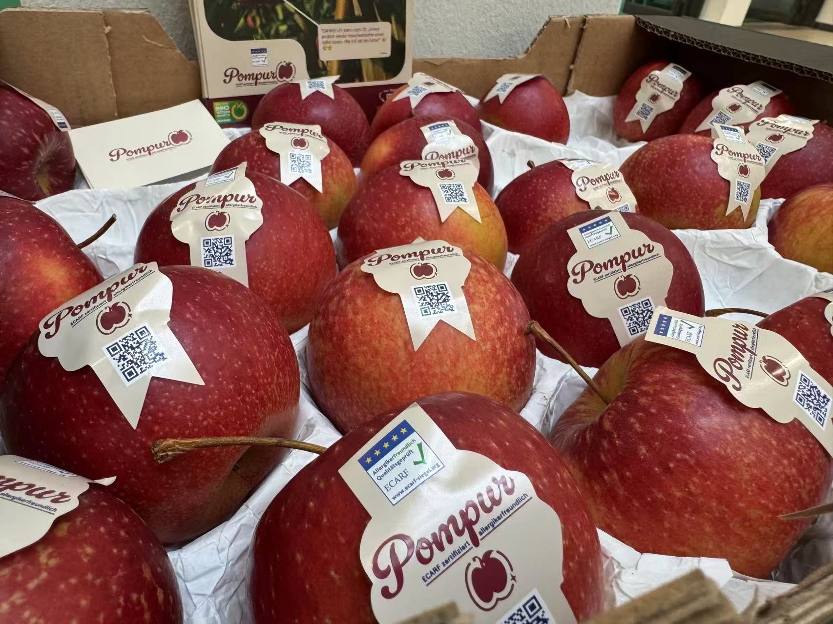 Niederelbe育种公司开发出了全球首款获得欧洲过敏研究中心基金会(ECARF)认证的抗过敏苹果品牌Pompur(意为纯净的苹果)。其外观鲜红、口感爽脆,而且对过敏群体友好。