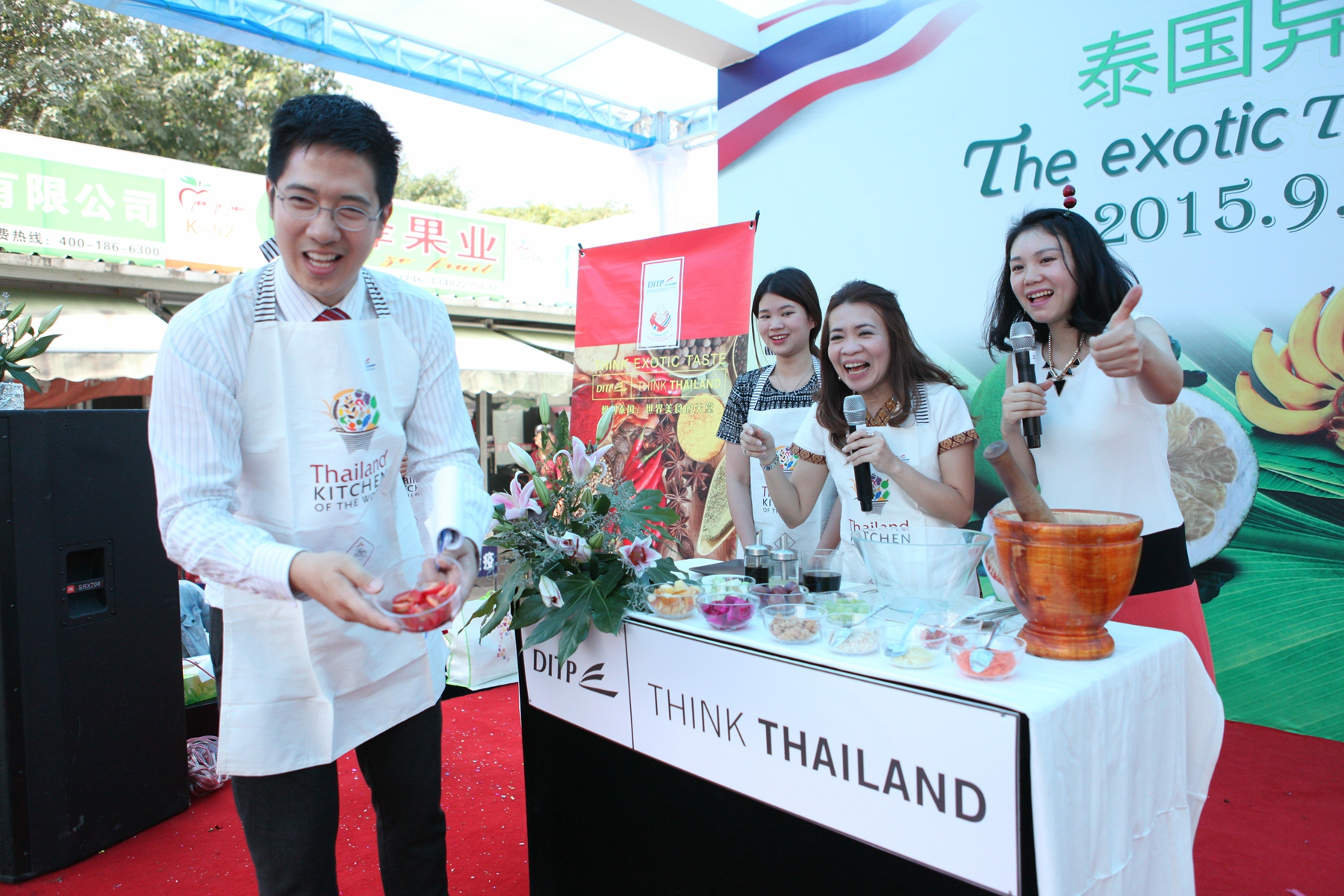 活动还包括了泰国传统歌舞欣赏、泰式水果色拉料理的品尝等环节,吸引中国消费者驻足观看。